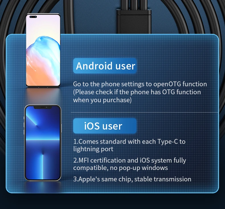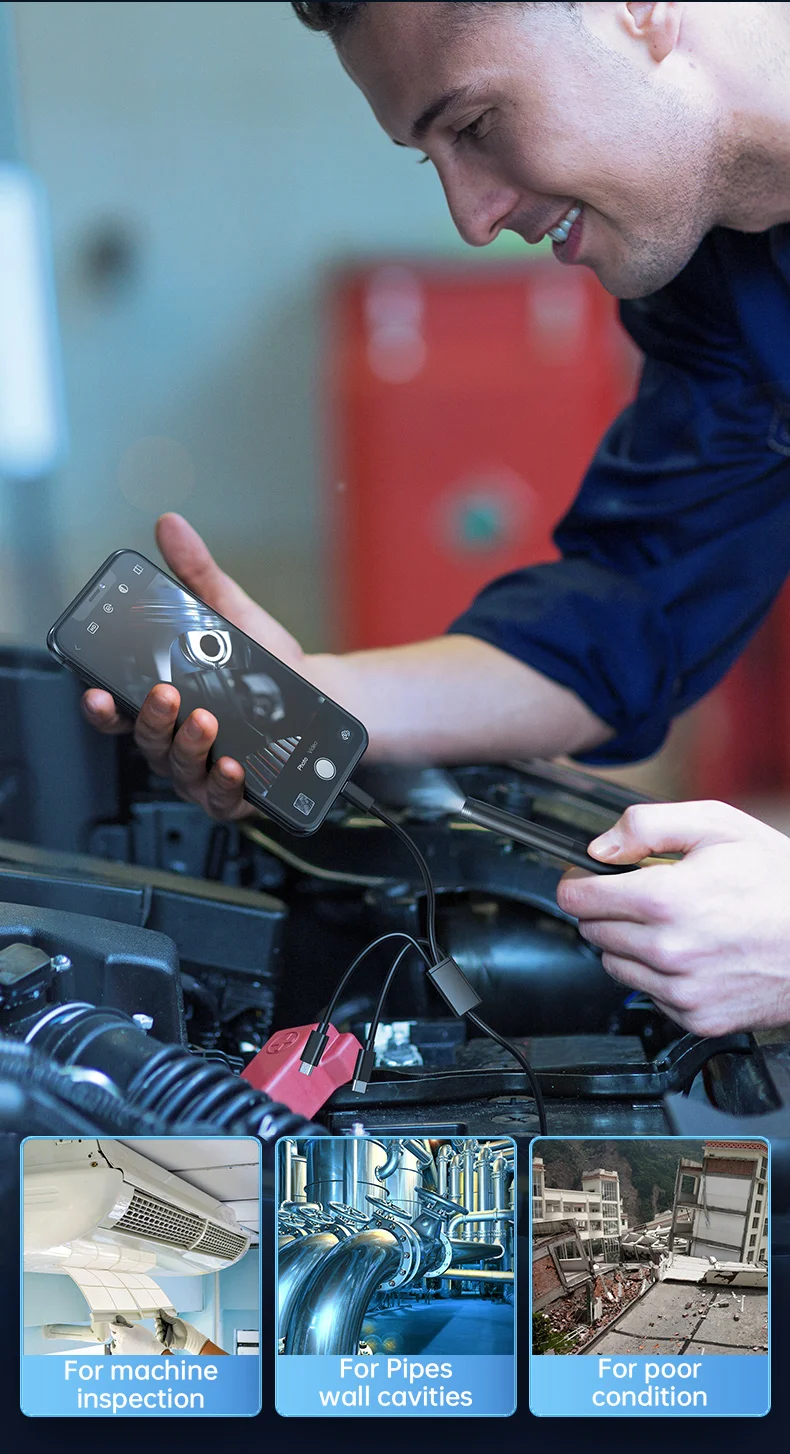 Inspección serpiente endoscopio para iPhone Android Smartphone